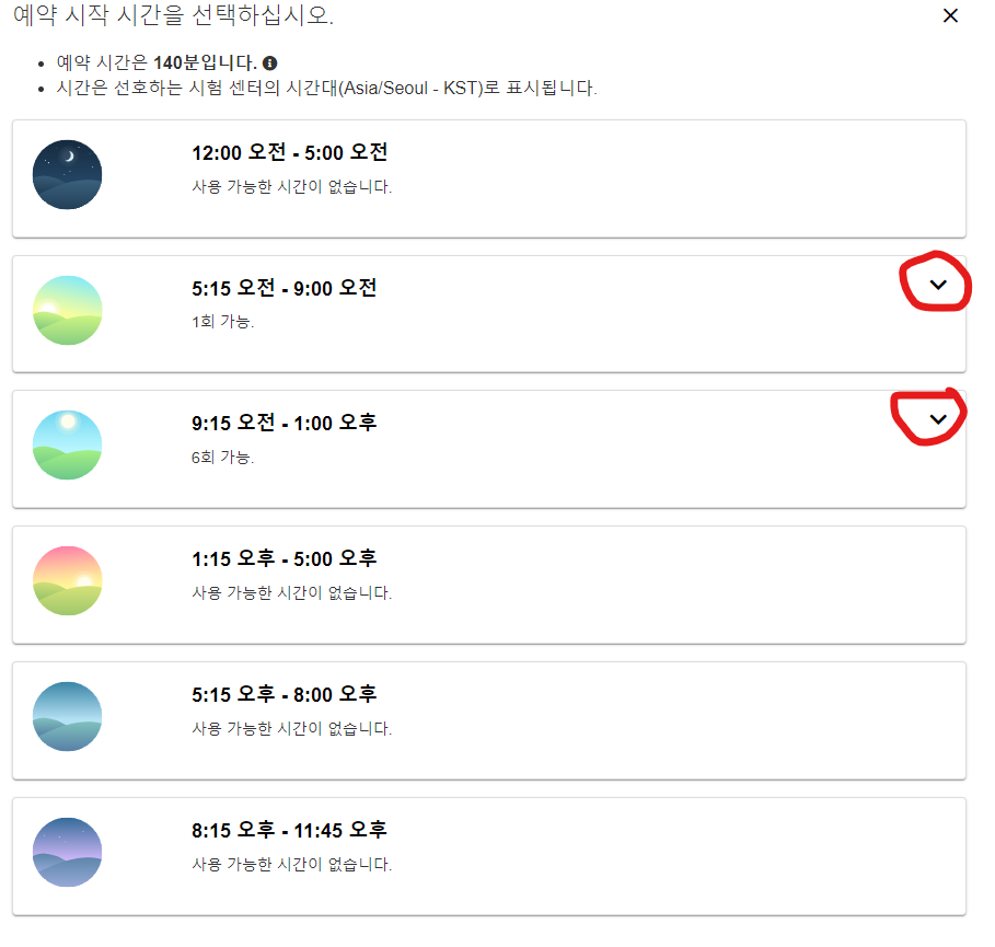 종종 확인해 봤는데 Pearson VUE는 등록할수 있는 날짜가 나타난걸 본적이 없습니다.