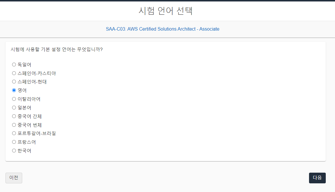 여기서 시험편의 지원 요청이 있는데 한국어로 시험볼때 시간을 늘릴수도 있고 여러 사항을 시험볼때 고려할수 있습니다.