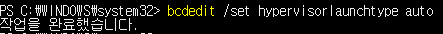 아래 명령어로 가상화를 켜주고 리부팅 합니다.
