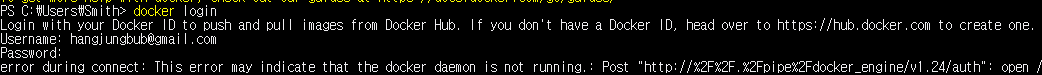 (발생안하면 잘된것이므로 login 하시고 docker 이용하시면 됩니다.)
