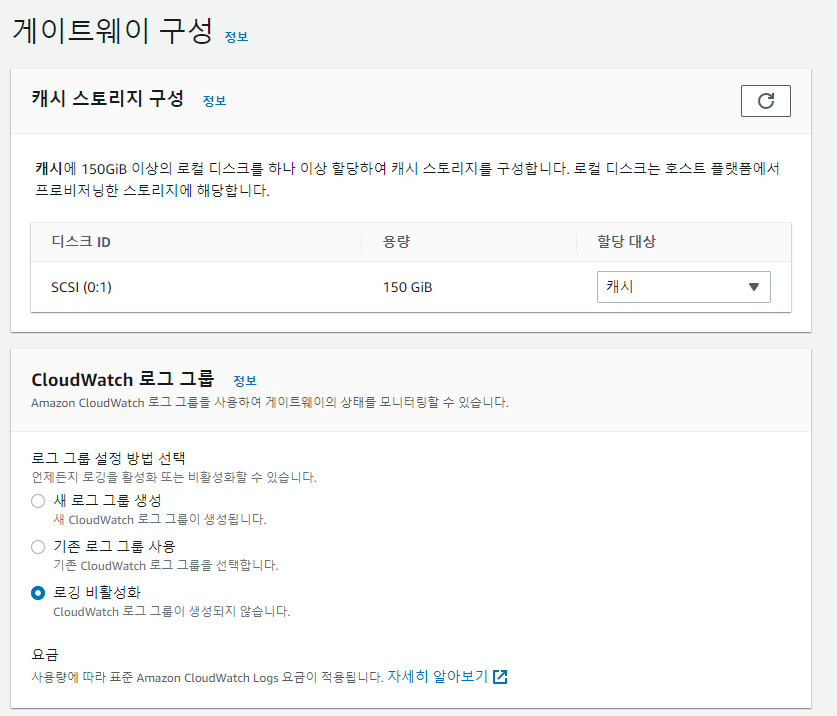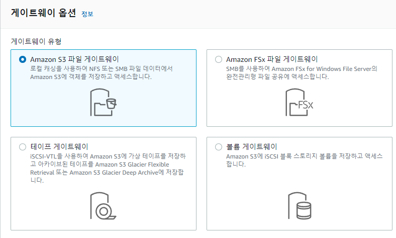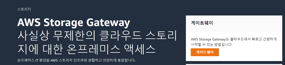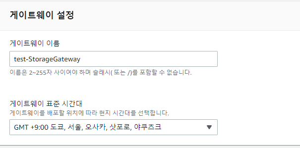 storaga gateway 에 들어가서 게이트웨이를 생성