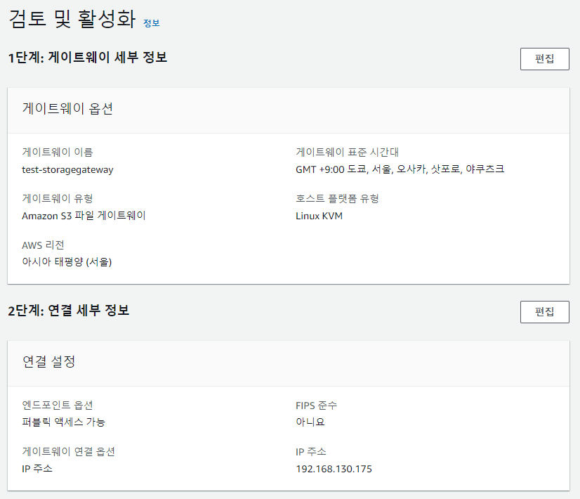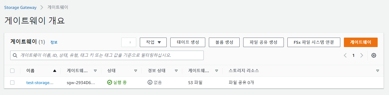 그러면 스토리지 게이트웨이가 잘 구성된것을 볼수 있습니다.