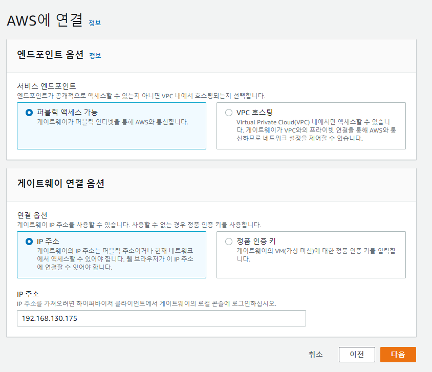 (온프레미스와 aws와 연결하기 때문이다.)