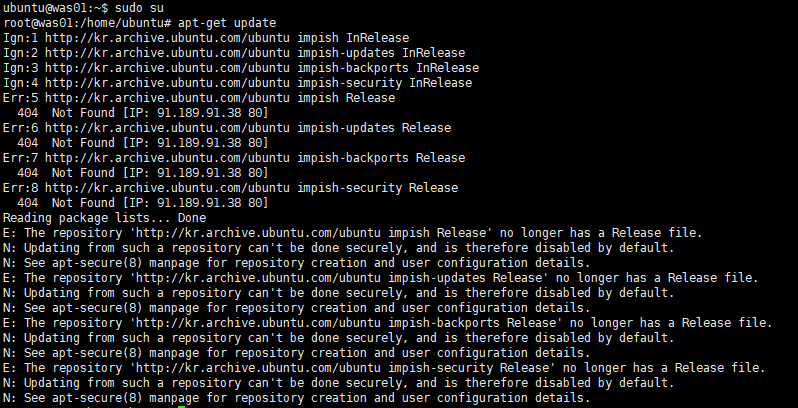이전 서버에 있는것과 비교해보니 impish라는 코드명이 수명이 다되어 업데이트가 안됐던것...(이미지 받을때 LTS 붙은걸로 받아야오래 씁니다..ㅠㅠ)