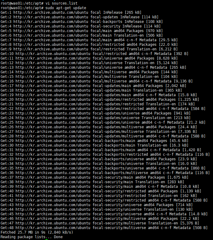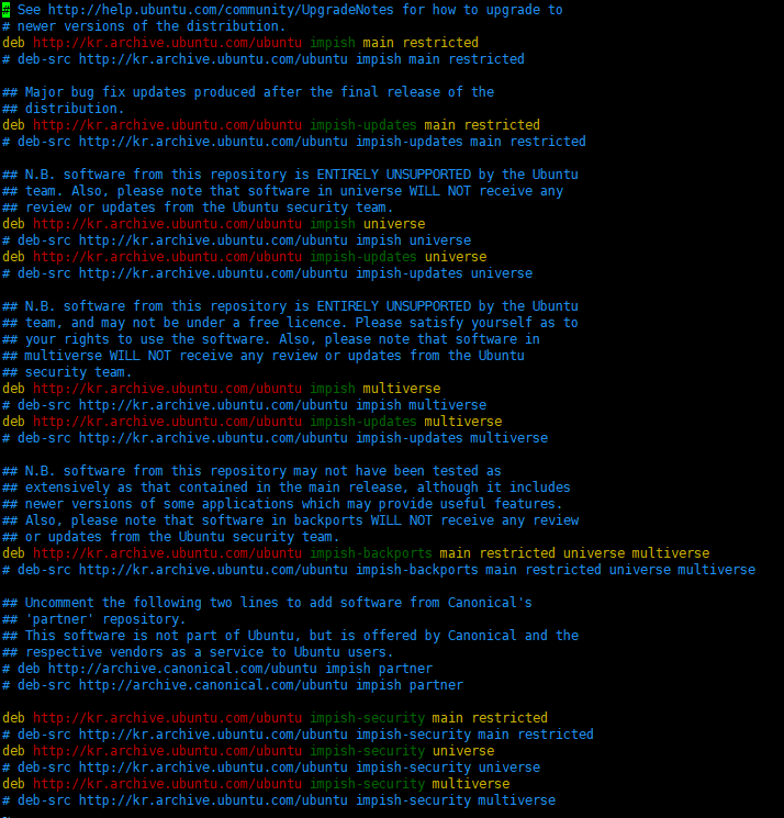apt는 /etc/apt/sources.list 에 있는 파일내에 경로를 참조하여 패키지를 받는다.