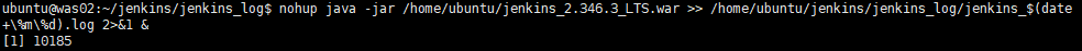nohup java -jar /home/ubuntu/jenkins_2.346.3_LTS.war >> /home/ubuntu/jenkins/jenkins_log/jenkins_$(date +\%m\%d).log 2>&1 &