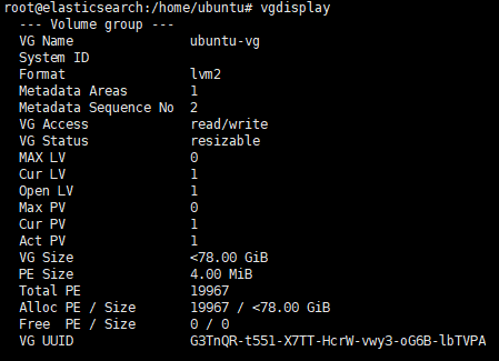 volume group확인하기위해 vgdisplay로 vg NAME 확인
