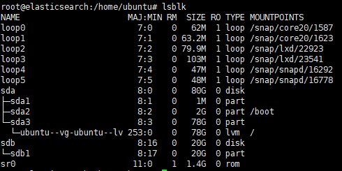 확인하기위해 lsblk 를입력합니다. /에 마운트가 된것을 볼수 있습니다.