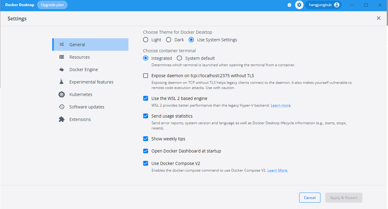 docker desktop 설정에서