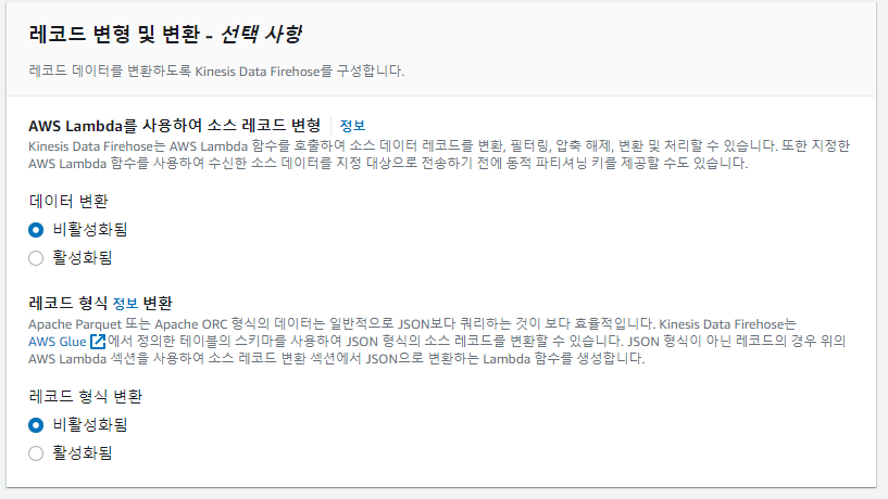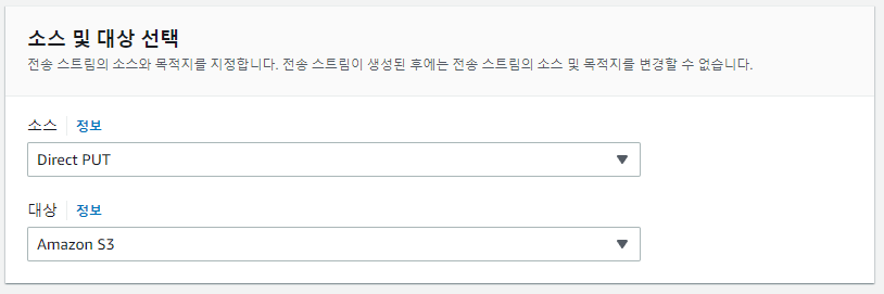 AWS kinesis data firehose 를 사용 할건데 한글로 보면 전송스트림이므로 왼쪽에 전송스트림을 누르시고 생성하거나