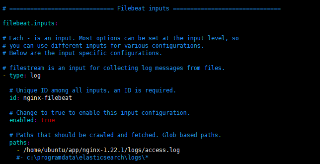 /etc/filebeat/filebeat.yml 에서 설정할수있습니다.