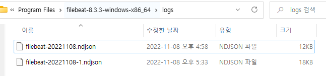 filebeat-20221109-2.ndjson 이런식의 형식으로 debug 로그가 생성 됩니다.