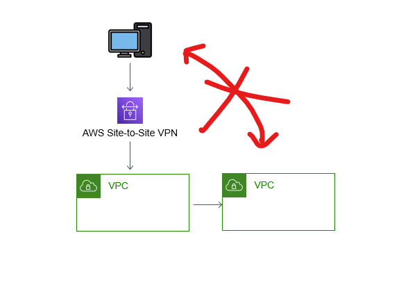 Site to Site vpn 하나와 vpc peering으로 2개의 vpc와 vpn을 연결할 수 있지 않을까?