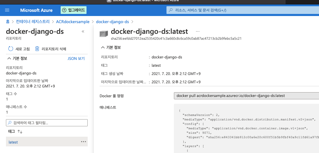 내가 전에 docker에 django 이미지를 올렸던걸 ACR에 올려보자