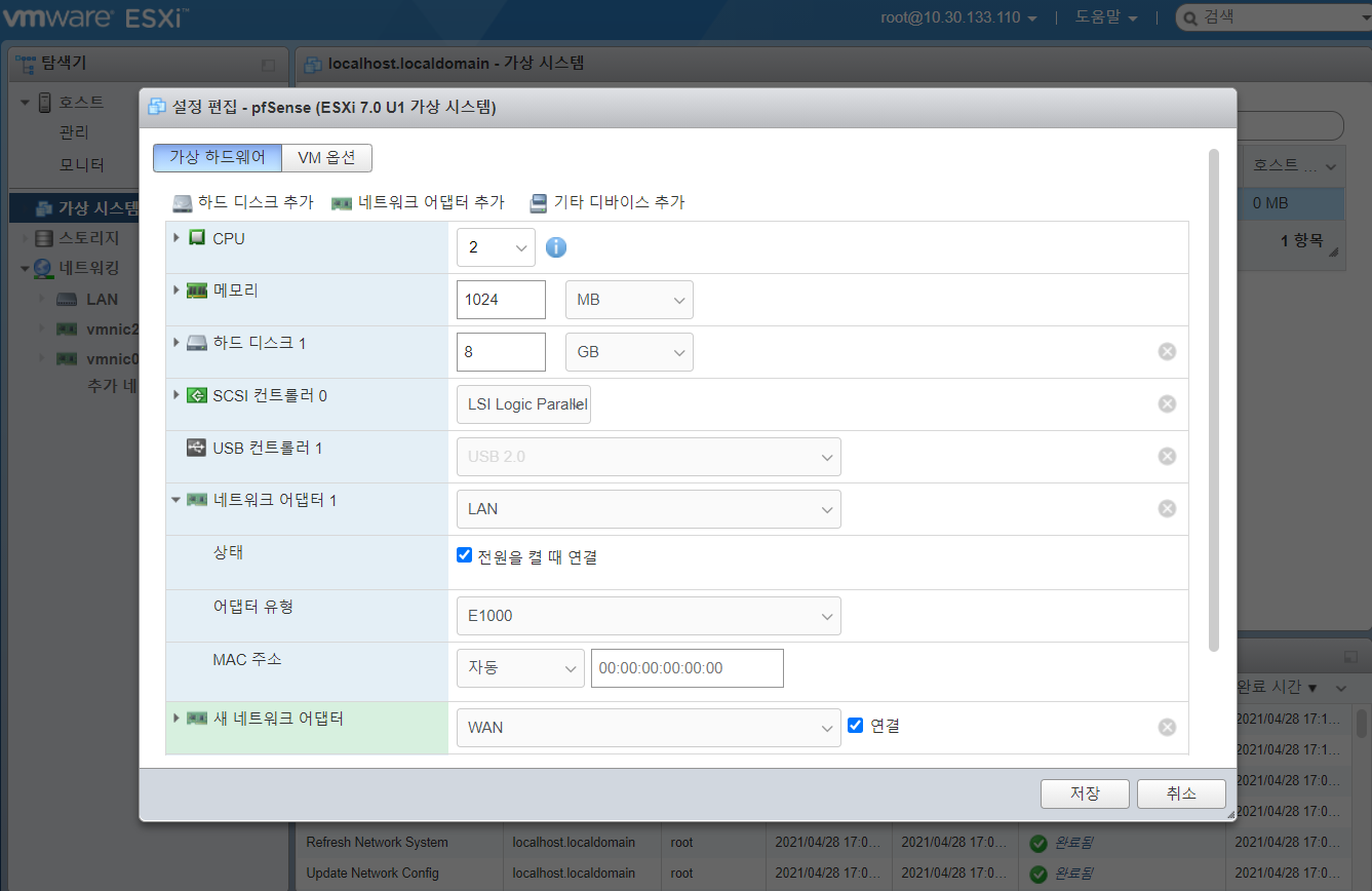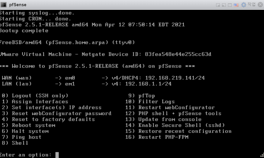 | ESXi 네트워크 구성 5 - pfSense 초기 세팅 구성 (0) | 2021.04.29 |