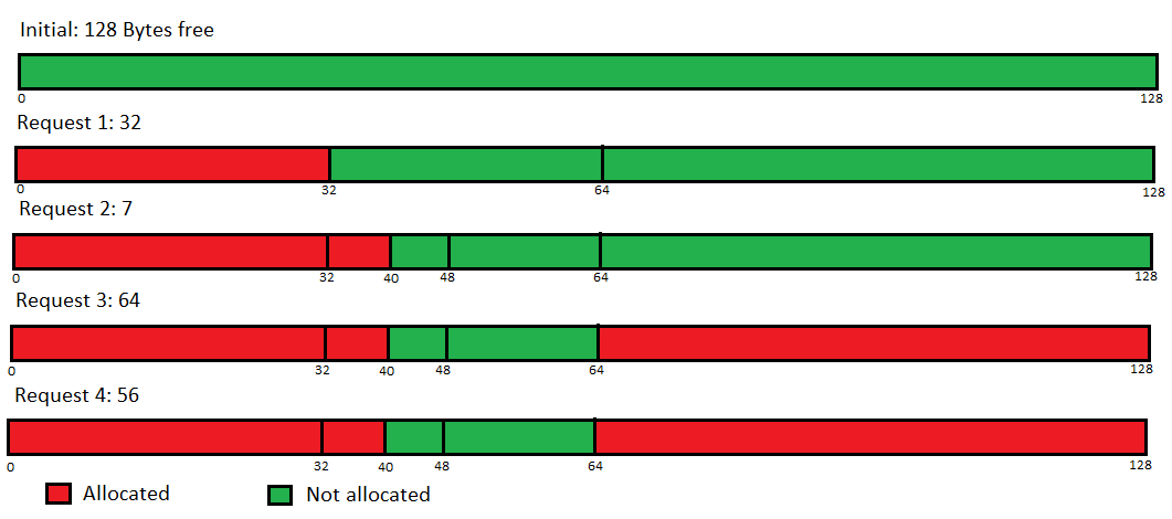 - 모든 할당 단위가 2의 거듭제곱이어야 합니다.
