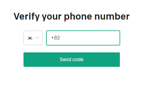 이런식으로 입력하고 send code 하면 가입 확인 문자에 확인 번호가 나오는데