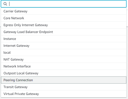 Destination 에는 상대 vpc ip cidr를 입력해주고 Target은 클릭하면 여러 서비스들이 나오는데 veering connection을 클릭하고 전에 만들었던 vpc peering 을 선택하고 저장하면 됩니다.