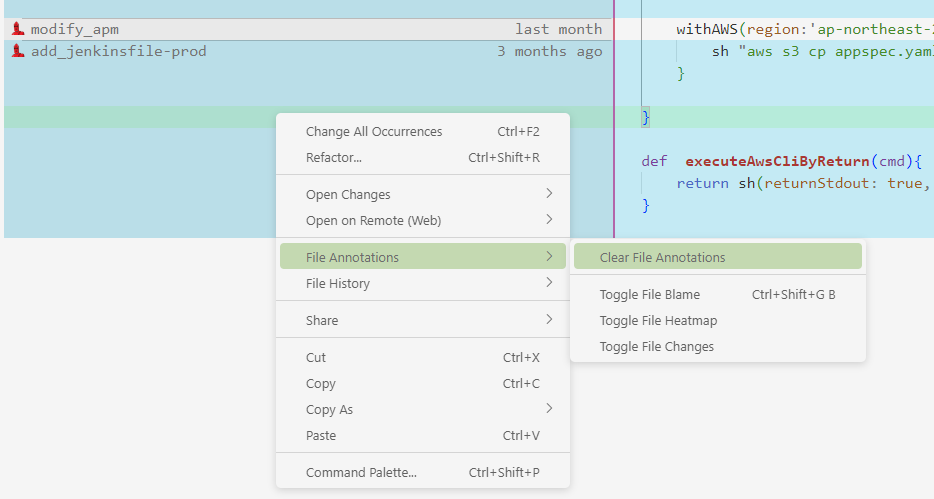 닫는 법은 오른쪽 누르고 File Annotations - Clear File Annotations 를 클릭하면 됩니다.