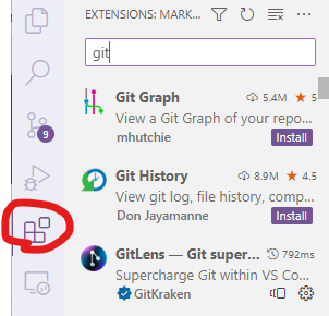 확장프로그램에서 git 을 검색하니 GitLens 가 가장 상위에 있어서 설치해 보았다.