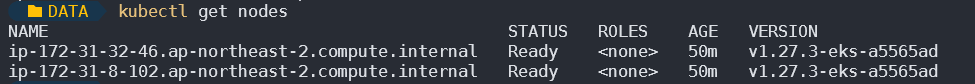 aws eks cluster 생성이후 노드 정보를 확인하려고 커맨드를 입력했는데