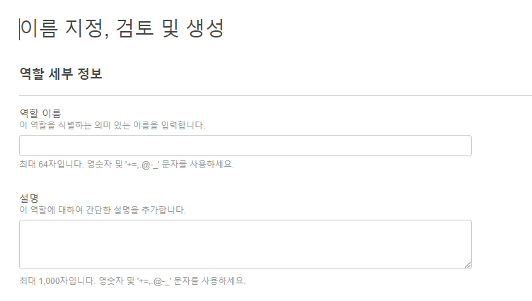 나머지는 확인 사항이라 확인하시고 문제 없으면 역할 생성을 합니다.