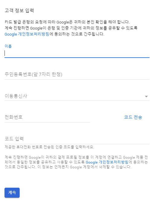 개인정보 및 카드 정보 입력하면 가입이 완료 됩니다.