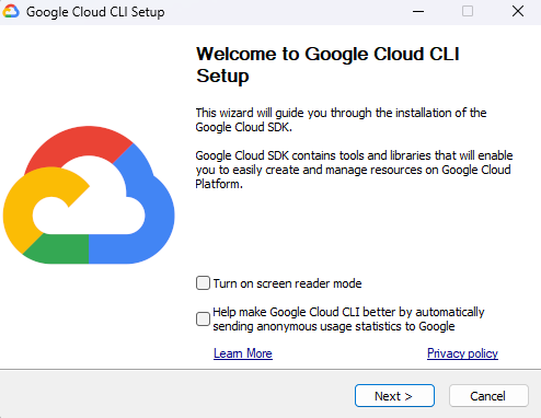 & $env:Temp\GoogleCloudSDKInstaller.exe