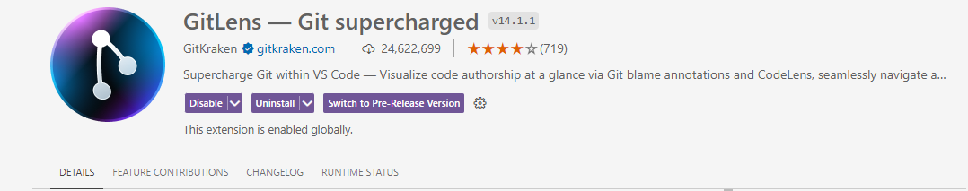 확장프로그램에서 git 을 검색하니 GitLens 가 가장 상위에 있어서 설치해 보았다.