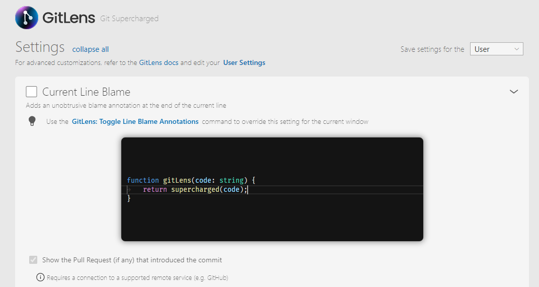 오른쪽에 gitlens 아이콘을 클릭하고 GitLensSettings를 클릭합니다.
